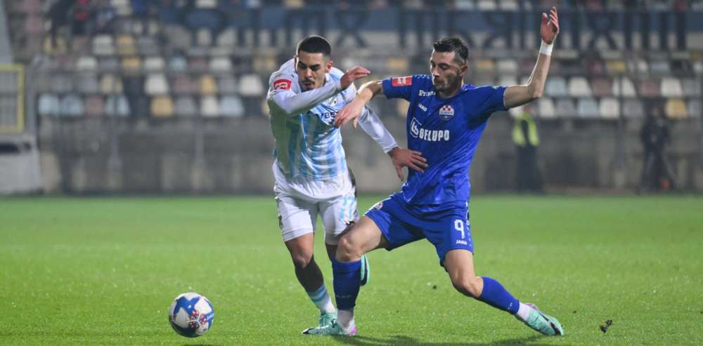 U 42. minuti odličan dupli pas Pjace i Fruka, ali udarac Pjace sa 16 metara išao je ravno u ruke vratara Slavena.