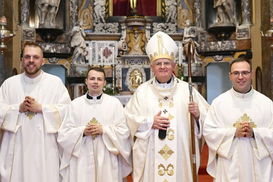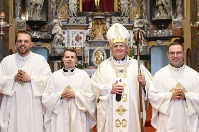 U riječkoj prvostolnici, katedrali sv. Vida, u subotu 25. travnja vladalo je ozračje kakvo se rijetko viđa: svečano, radosno i ispunjeno dubokim osjećajem zajedništva. Mnoštvo vjernika – obitelji, prijatelji, svećenici, redovnice te gosti iz raznih krajeva Hrvatske i inozemstva – ispunilo je katedralu kako bi svjedočilo jednom od najvažnijih događaja za mjesnu Crkvu. Povod je bio svećeničko ređenje trojice đakona: Matije Luketića, Karla Stipeča i Marija Đurića.