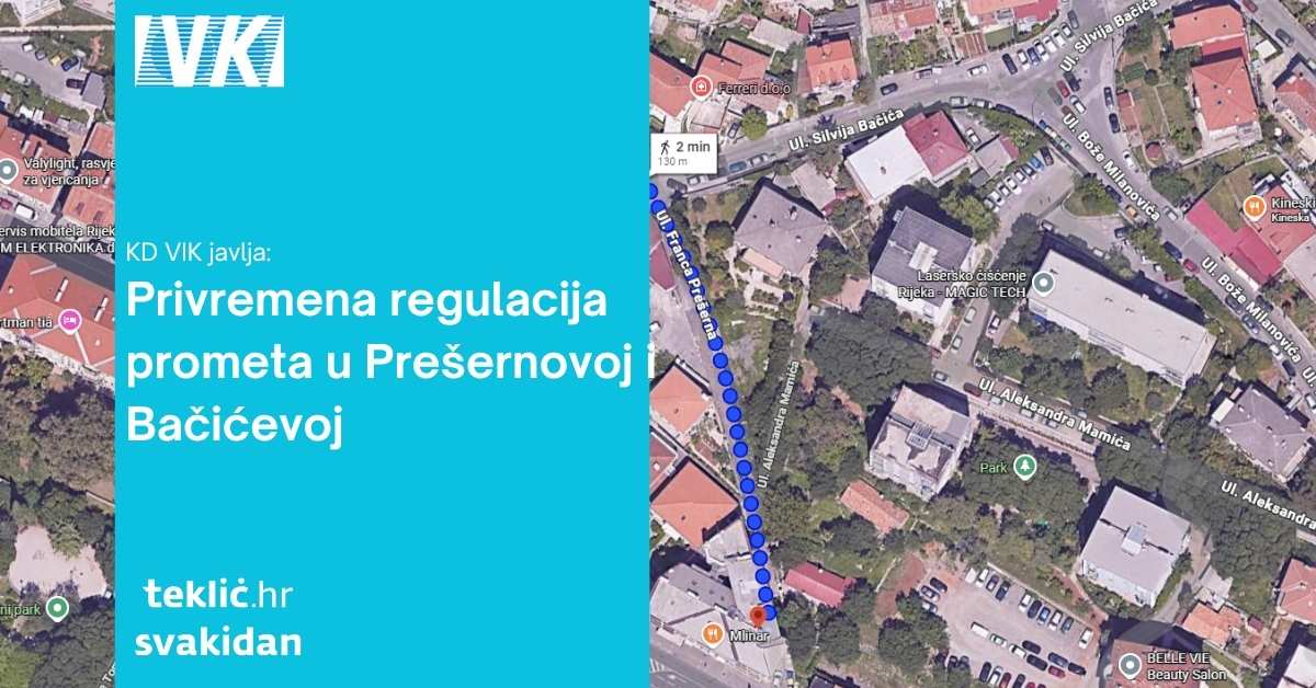 Radovi počinju 19. studenog i trajat će do 22. studenog 2025. godine, svakog dana od 9 do 15 sati. U tom razdoblju ulica Franca Prešerna te dio ulice Silvija Bačića (od kućnog broja 1 do 15) bit će zatvoreni za sav promet. Izvođači će u navedenom periodu mijenjati dotrajale vodovodne instalacije, što je dio šireg projekta unapređenja sustava opskrbe vodom na širem riječkom području.